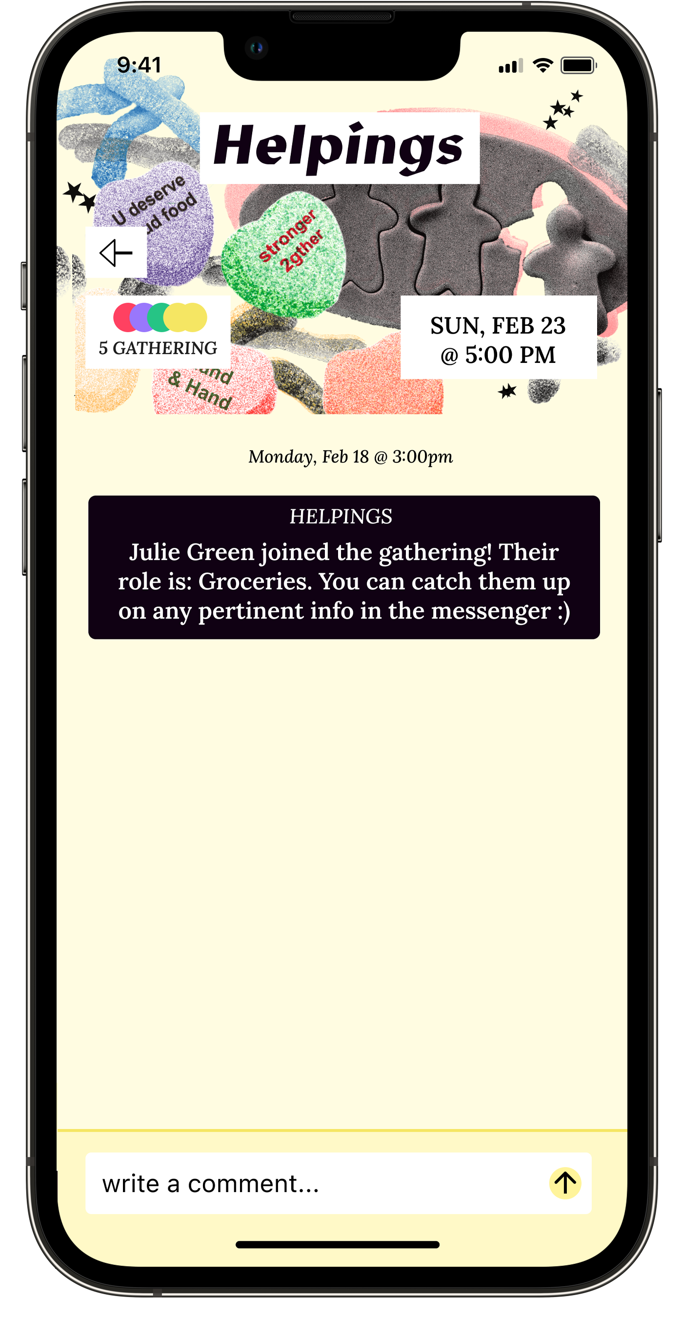I believe governments will continue to shift priorities from serving the people to serving themselves. I hope I’m wrong, and have simply made a fun app where you can cook with new people. If I’m right, this is a way to begin to prioritize community care, realize common goals, and learn to take action together.